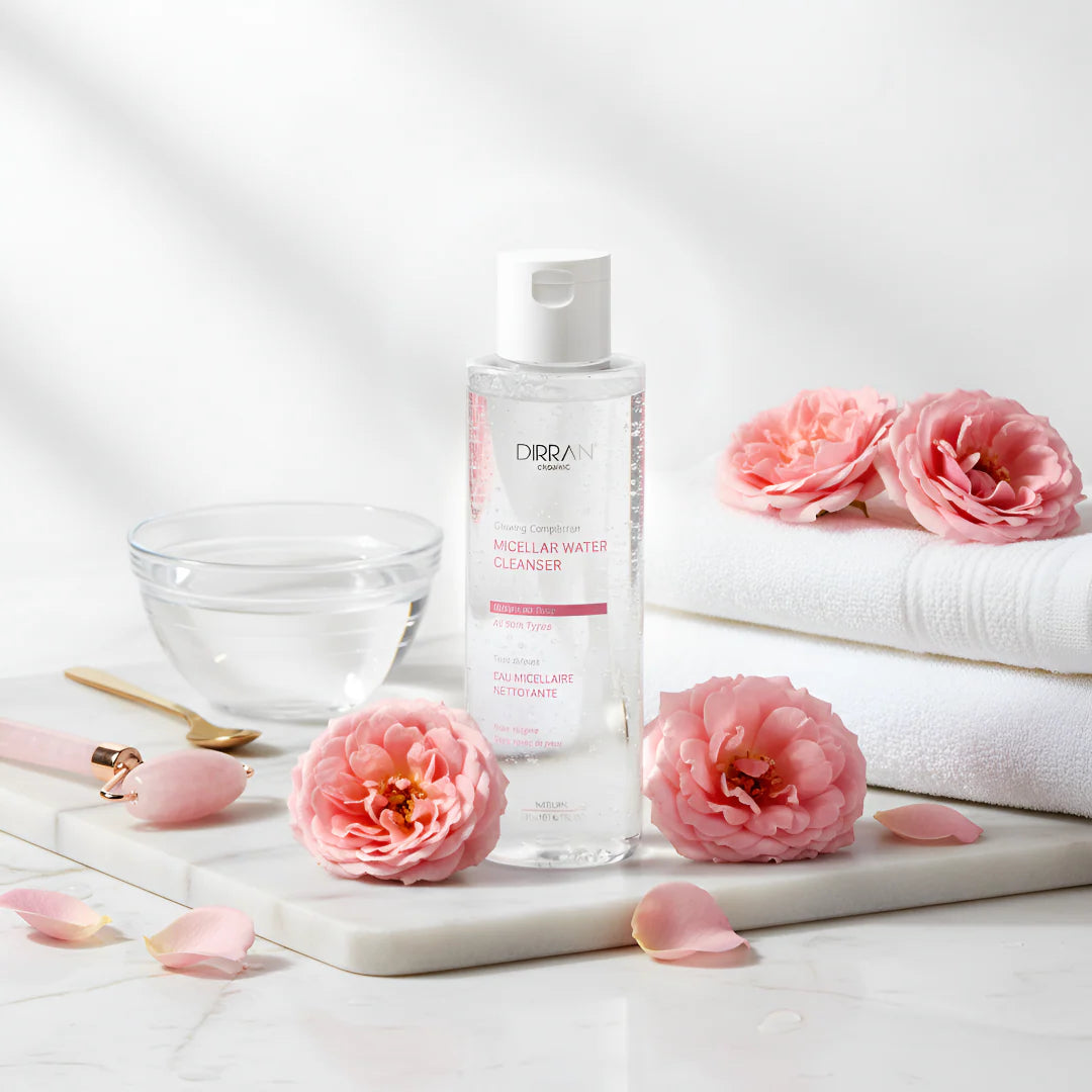 Damask rose water makeup Remove, impurities and dirt for a glowing complexion. this product has pore-tightening properties, soothing skin irritation, protecting cell damage, and unifying skin tone. Suitable for all skin types, even sensitive skin.